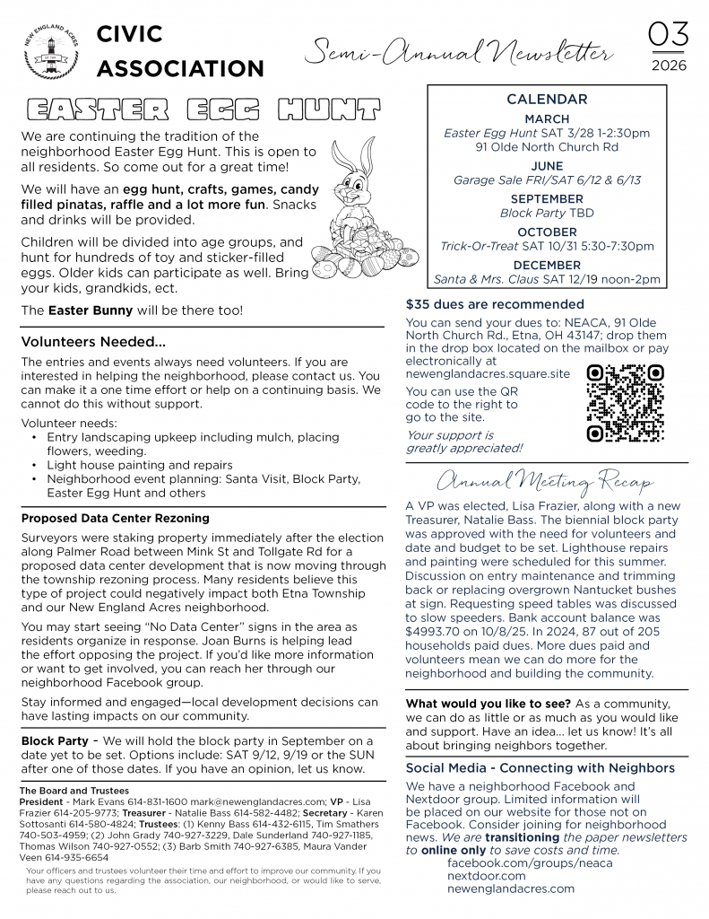 Facebook is most active though. We have transitioned away from paper newsletters to reduce costs and time. Please join on of the two groups for neighborhood information. Limited information will be posted here.